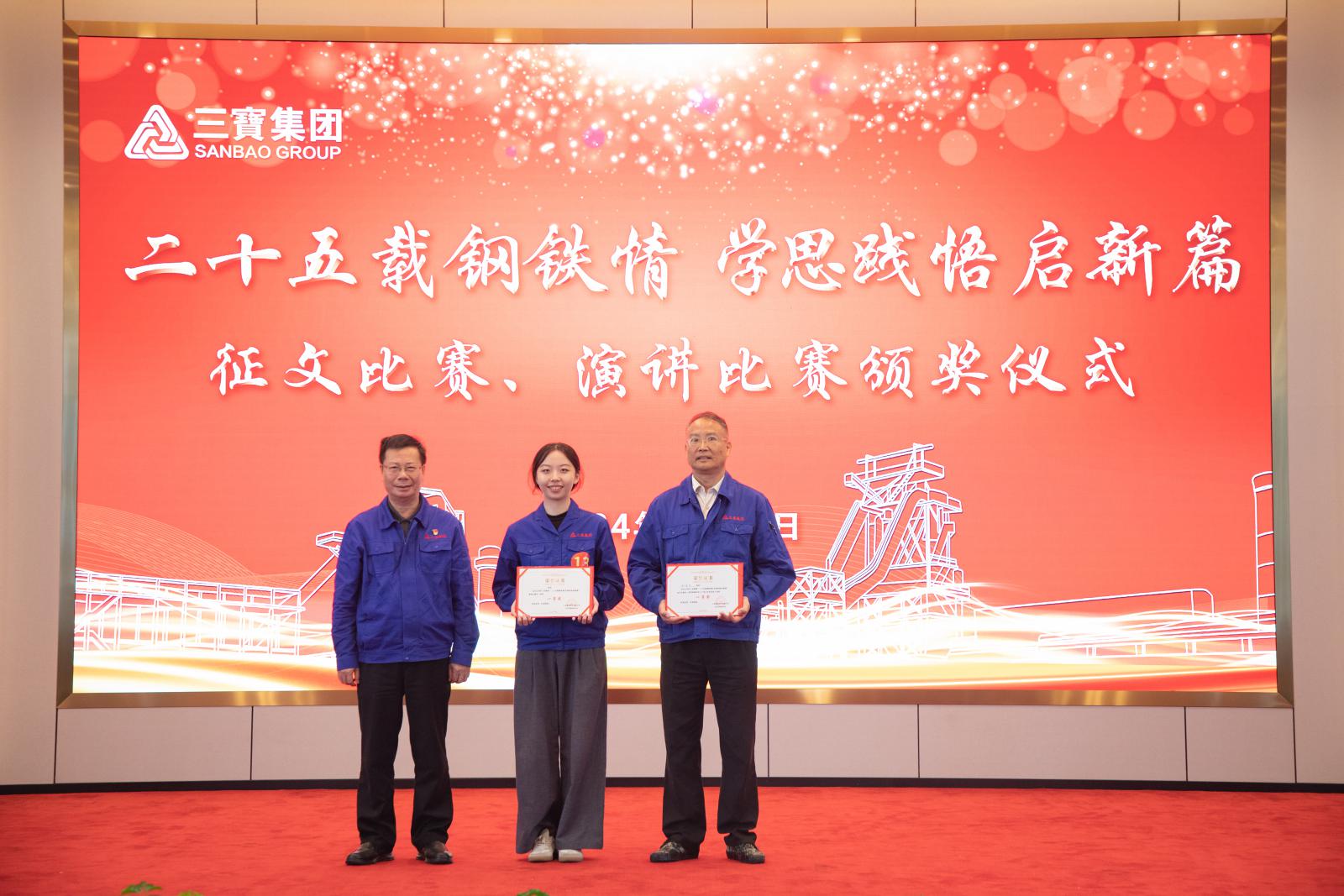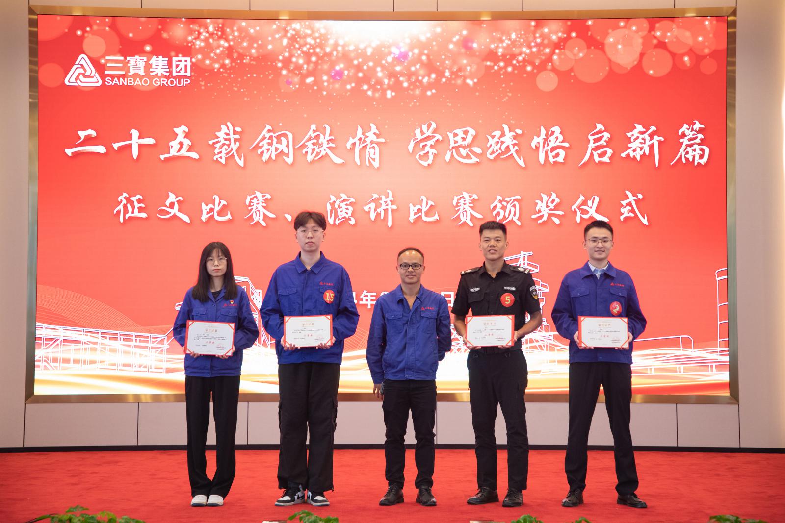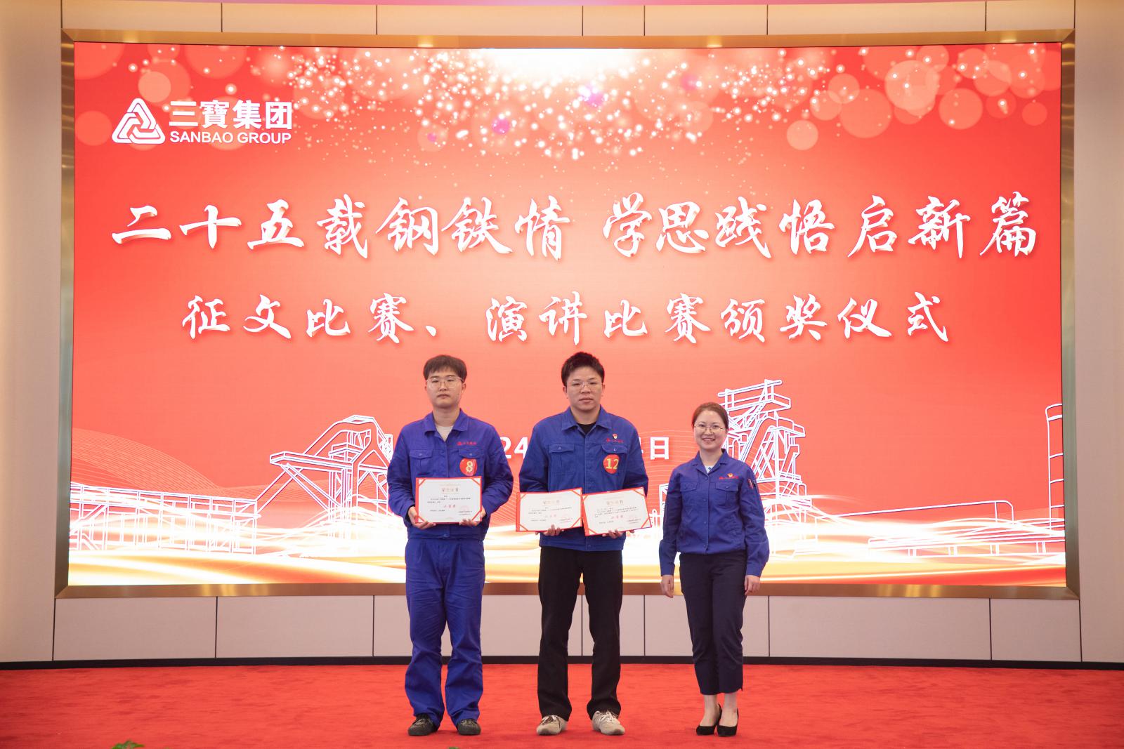 经由强烈角逐,, ,,,疤厥饪余钰荣获一等奖,, ,,,制氧厂吴新鑫、生产部刘亦将获得二等奖,, ,,,财务部林璋铭、综合治理部柯维建、办公室曾国会获得三等奖。。。。。。。集团向导为获奖步队颁奖,, ,,,同时,, ,,,为企业文化征文角逐获奖的员工颁奖。。。。。。。