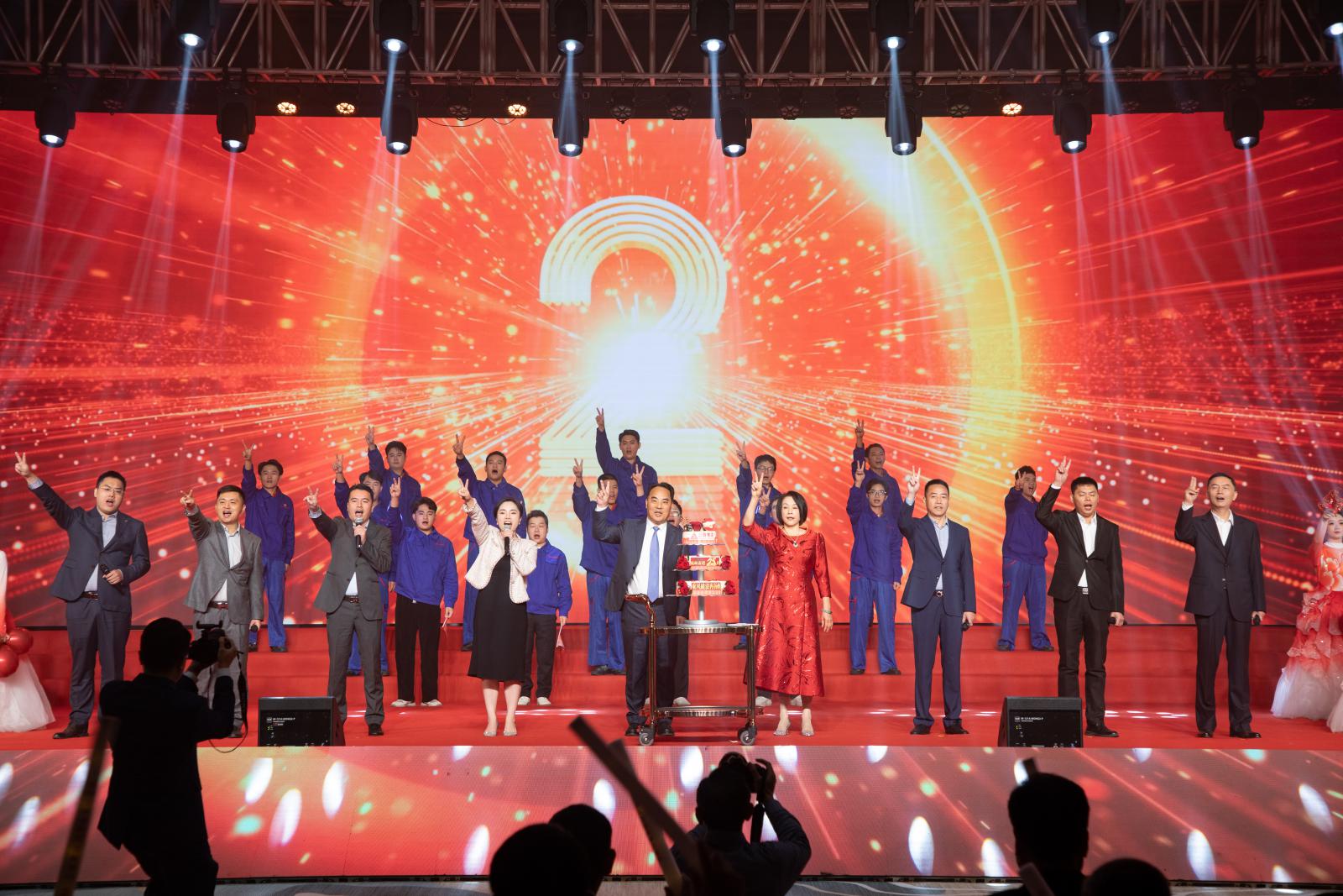 随着《生日歌》旋律悠扬响起,,,, , ,,大屏幕上播放出30余家相助同伴的温馨祝福。。。。。。王光文董事长匹俦携集团高层治理团队及员工代表登台,,,, , ,,切下象征着25年生长与希望的庆典蛋糕,,,, , ,,将庆典气氛推向了热潮。。。。。。最后,,,, , ,,在王董事长的向导下,,,, , ,,集团高层治理团队满怀激情地唱响了《众人划桨开大船》与《AG真人总部集团有限公司|首页之歌》,,,, , ,,这场庆典在欢声笑语中圆满落下帷幕。。。。。。